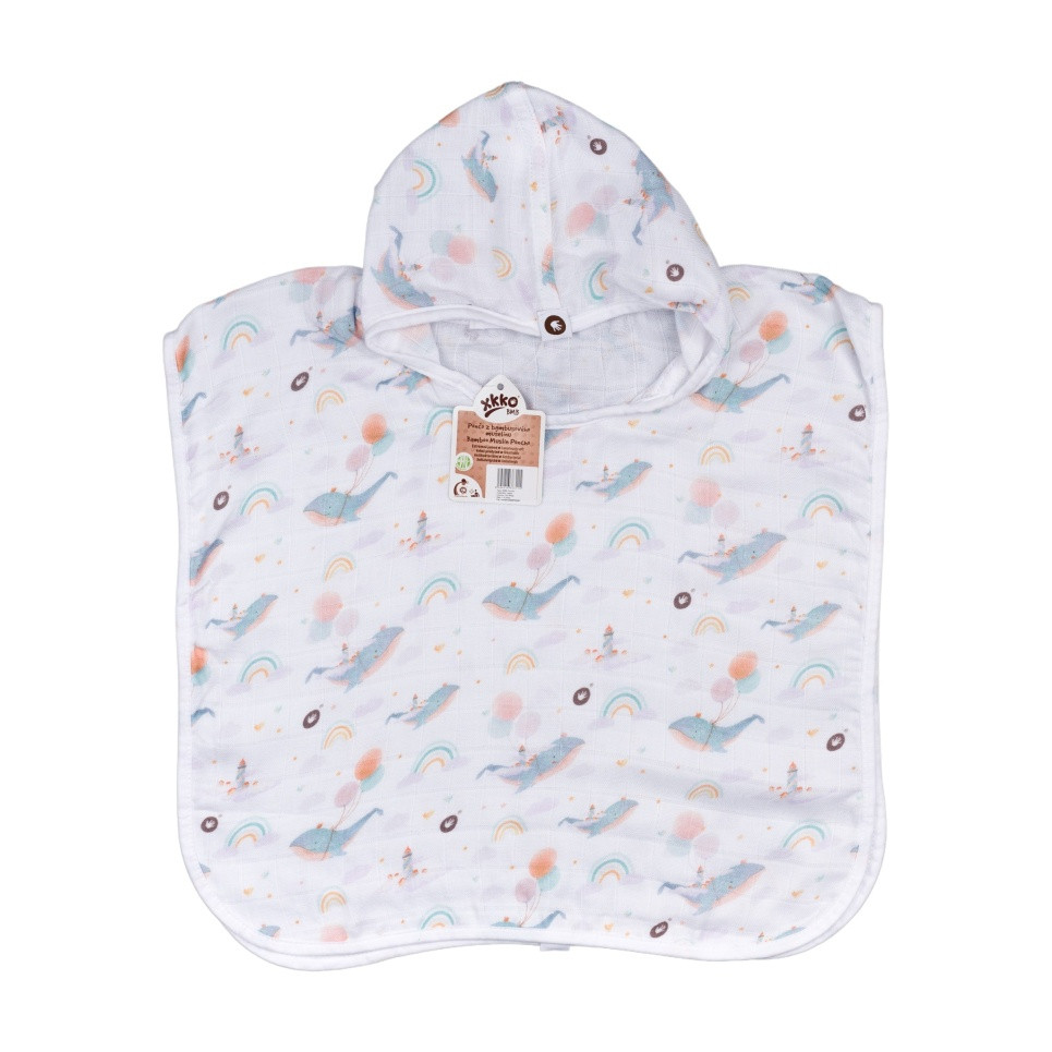 • Bambusové mušelínové pončo XKKO BMB Digi - Sky Whale Vel.1