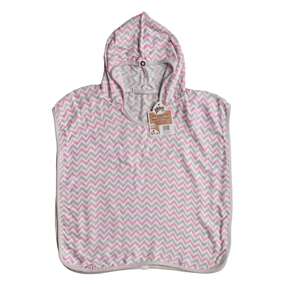 Bambusové mušelínové pončo XKKO BMB - Chevron Baby Pink Vel. 1